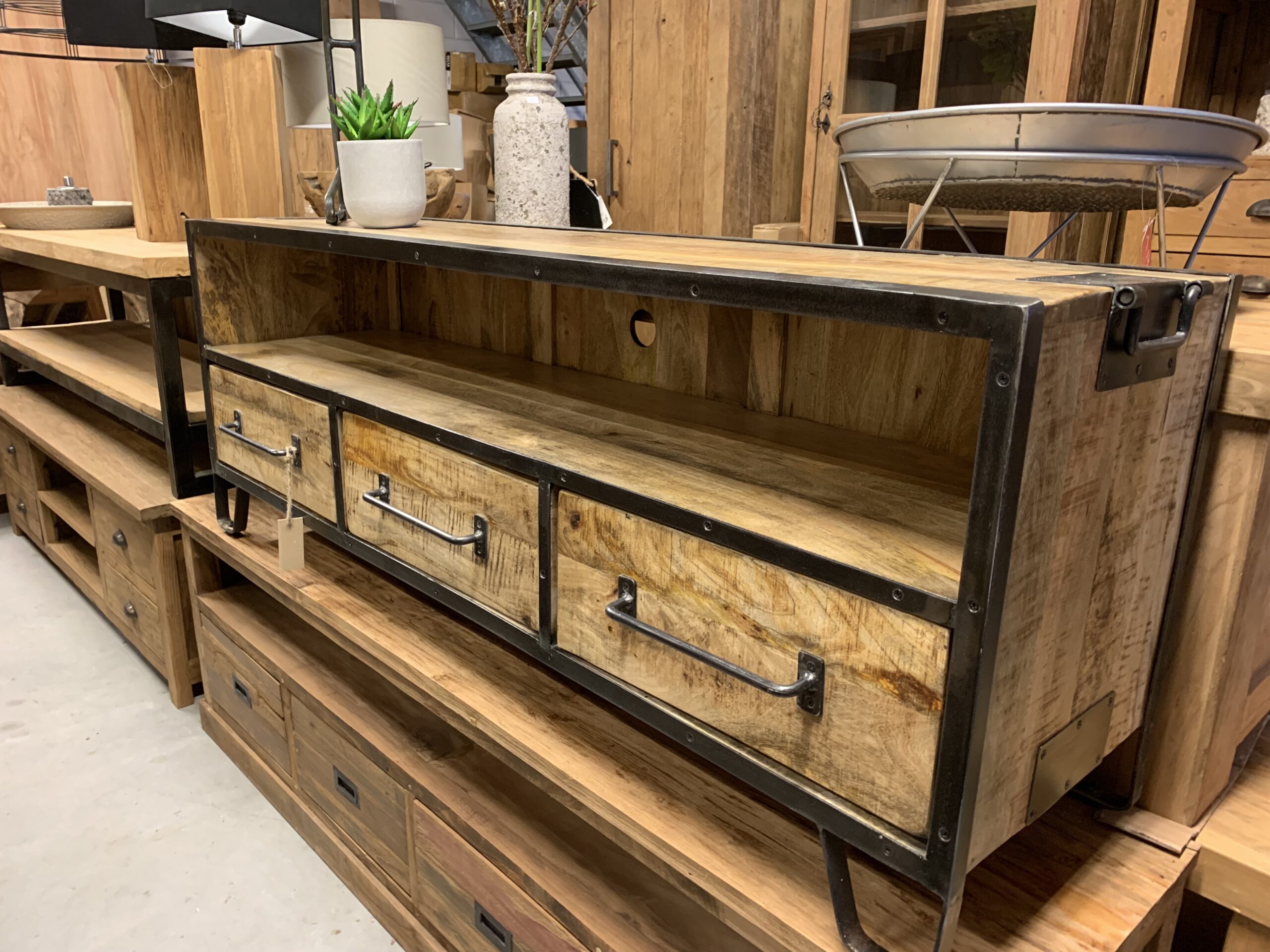 Tags: Audiomeubel, Biddinghuizen, Flevoland, Industrieel, Interieur, Mangohout, Metaal, Meubelen, Meubels, Plasmakast, Polder TEAK, Tv-kast, voordelig